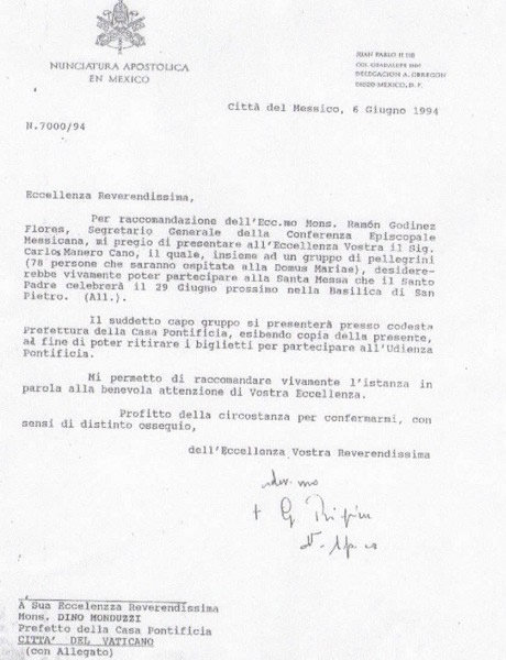 Carta del Señor Exmo. Don Ricardo Guizar Díaz